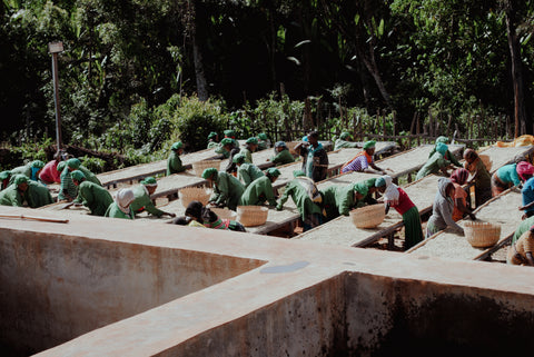 Die Kaffeekirschen wachsen nicht nur im Schatten einheimischer Wälder auf ungefähr 2100m, sondern werden auf dieser Höhe nach der händischen Ernte in der Washing Station Halo Beriti von METAD auch weiterverarbeitet.