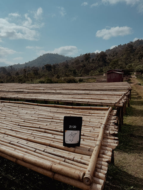 Bei Ankunft wird der Kaffee entpulpt, gewaschen und anschließend für mindestens 14 Tage in der Sonne auf Hochbetten getrocknet. Hier entstehen durch eine eher bakterielle und reduziertere Fermentation Klarheit, Spritzigkeit und eine doch überraschend saftige Textur. Kombiniert mit einem intensiven, typischen Aroma der Region: Pfirsich, Aprikose, Jasmin und Bergamotte.